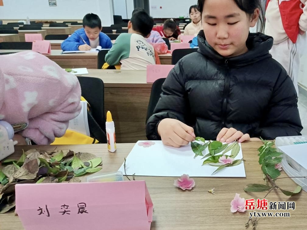 戶外勞動(dòng)結(jié)束后,社區(qū)依托活動(dòng)陣地,組織開展樹葉貼畫創(chuàng)意制作活動(dòng)。工作人員與社工一同為孩子們準(zhǔn)備材料、講解技巧,鼓勵(lì)大家將落葉變廢為寶,以創(chuàng)意作品表達(dá)對(duì)綠色生態(tài)的向往。孩子們盡情發(fā)揮想象力,相互協(xié)作、大膽創(chuàng)作,一幅幅充滿童趣的樹葉畫作,展現(xiàn)了青少年對(duì)美好家園的熱愛。
