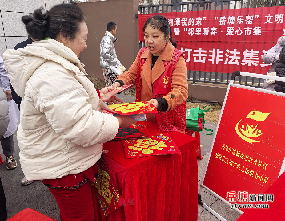 岳塘融媒2月12日訊(通訊員:潘亞蒂)春節(jié)臨近,為營造溫馨祥和的節(jié)日氛圍,傳承和弘揚(yáng)中華優(yōu)秀傳統(tǒng)文化,近日,岳塘區(qū)霞城街道牡丹社區(qū)綜合文化中心聯(lián)合新時(shí)代文明實(shí)踐站開展“我們的節(jié)日·春節(jié)”“迎新春 送春聯(lián) 送福字”志愿服務(wù)活動,把滿滿的新春祝福送到居民手中。